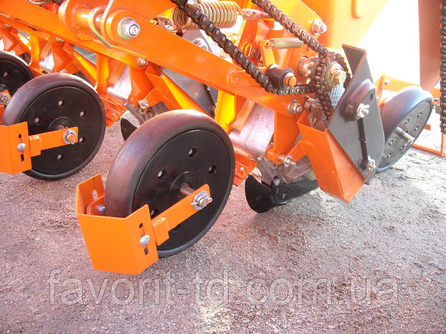 Впереди рабочей секции установлен комкоотвод, позволяющий убрать из зоны посева комья и сухой слой почвы.